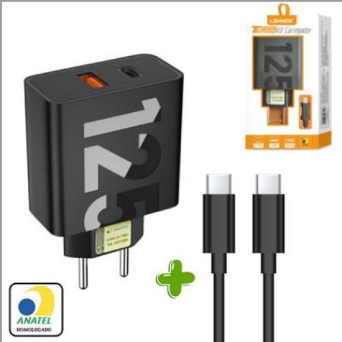 CARREGADOR DE CELULAR LEHMOX TIPO-C TURBO 125W USC+USB-C